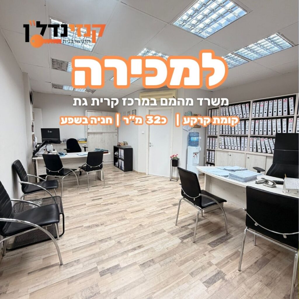 למכירה משרד מהמם במרכז קריית גתמשרד בגודל 32 מ״ר בלב העירממוקם בקומה הראשונה עם גישה מלאה לנכיםהאזור מרכזי ונגיש עם חנייה זמינה ונוחההמשרד ממוזג ומתוחזק ברמה גבוהה דמי הניהול 11.90 ש״ח למ״רמחיר שיווק 420,000 ש״ח פלוס מע״מ