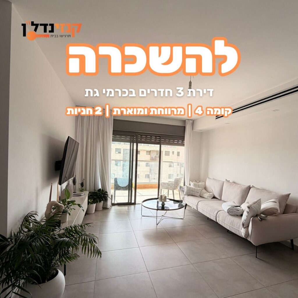 להשכרה בכרמי גת – רחוב אבני החושןדירת 3 חדרים מרווחת ומוארת, בקומה 4 מתוך 20גודל הדירה כ74 מ"ר, 10 מ"ר מרפסתכוללת 2 חניות, תכנון נוח ומיקום מצוין במרחק הליכה מהביג ומהתיכון.